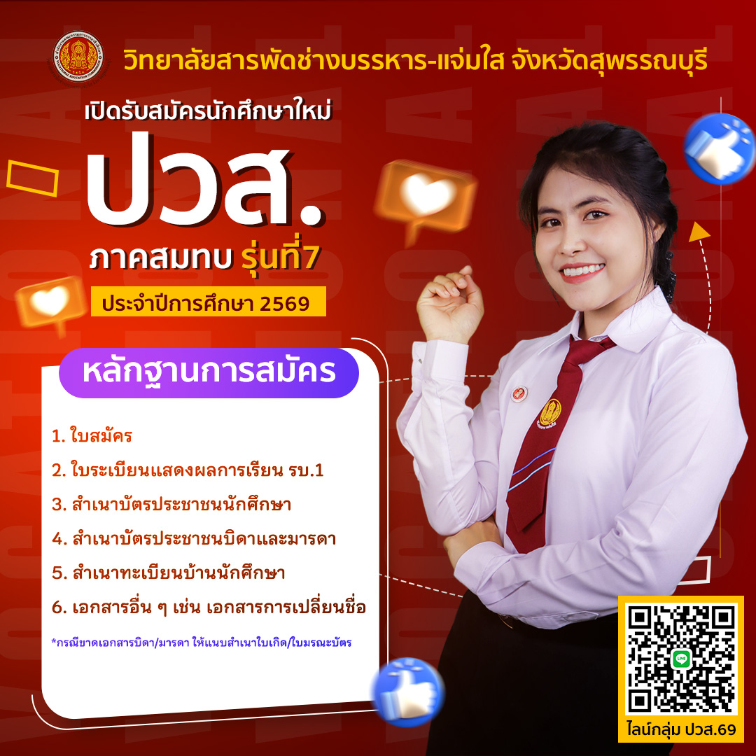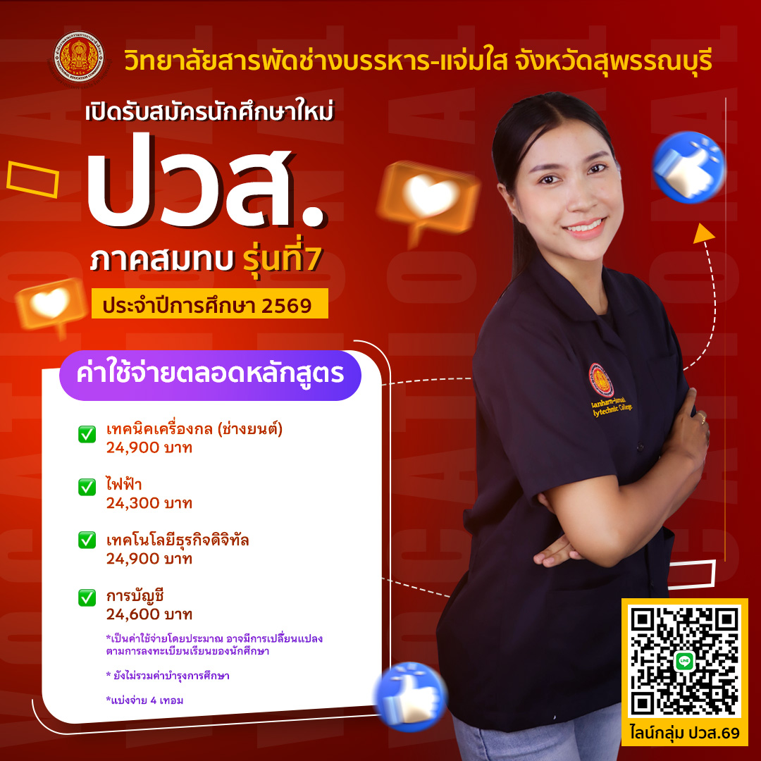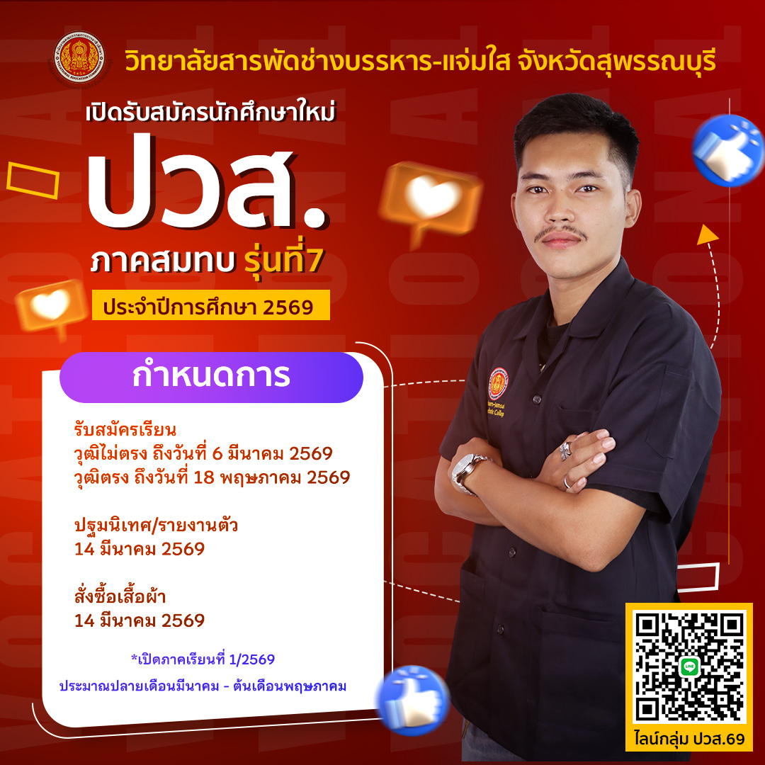 * ผู้ที่มีวุฒิ ปวช.ตรงสาขา สมัครได้ตั้งแต่วันที่ 10 พฤศจิกายน 2568 - 18 พฤษภาคม 2569 *